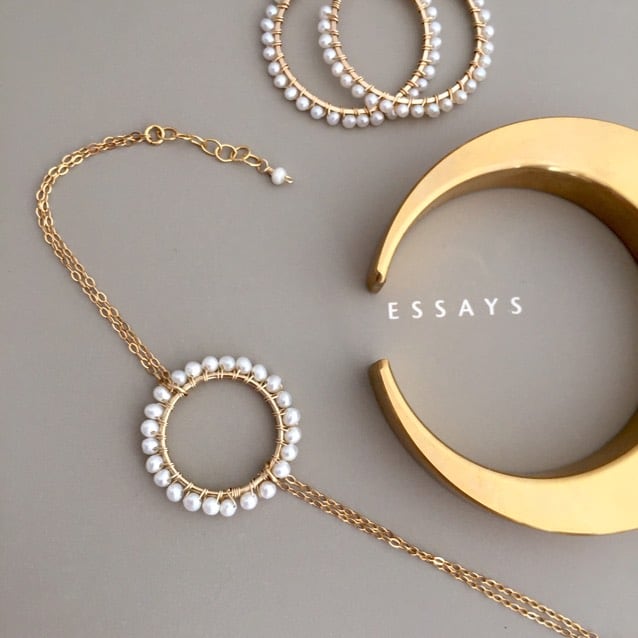 小さなパールをあしらい女性らしさをプラスしたブレスレットです