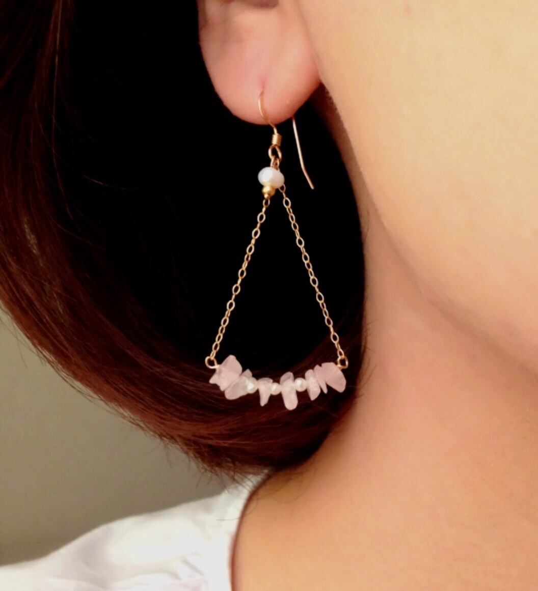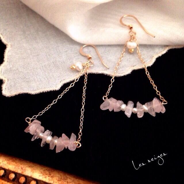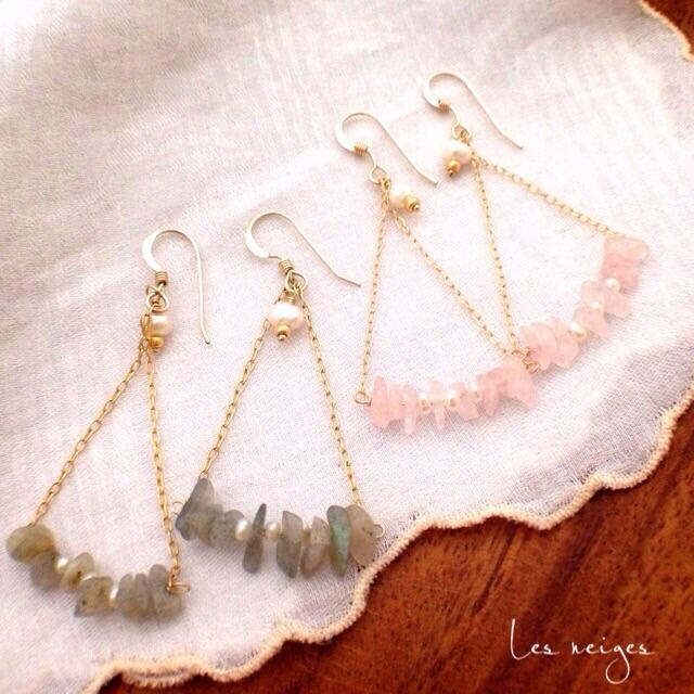 ラブラドライト/ローズクォーツ スイングチェーンピアス