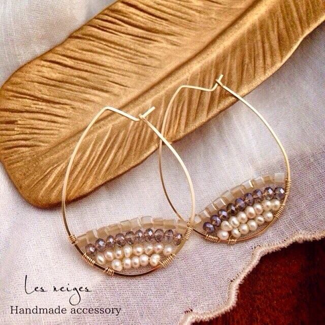 フープのゴールドとガラスビーズが