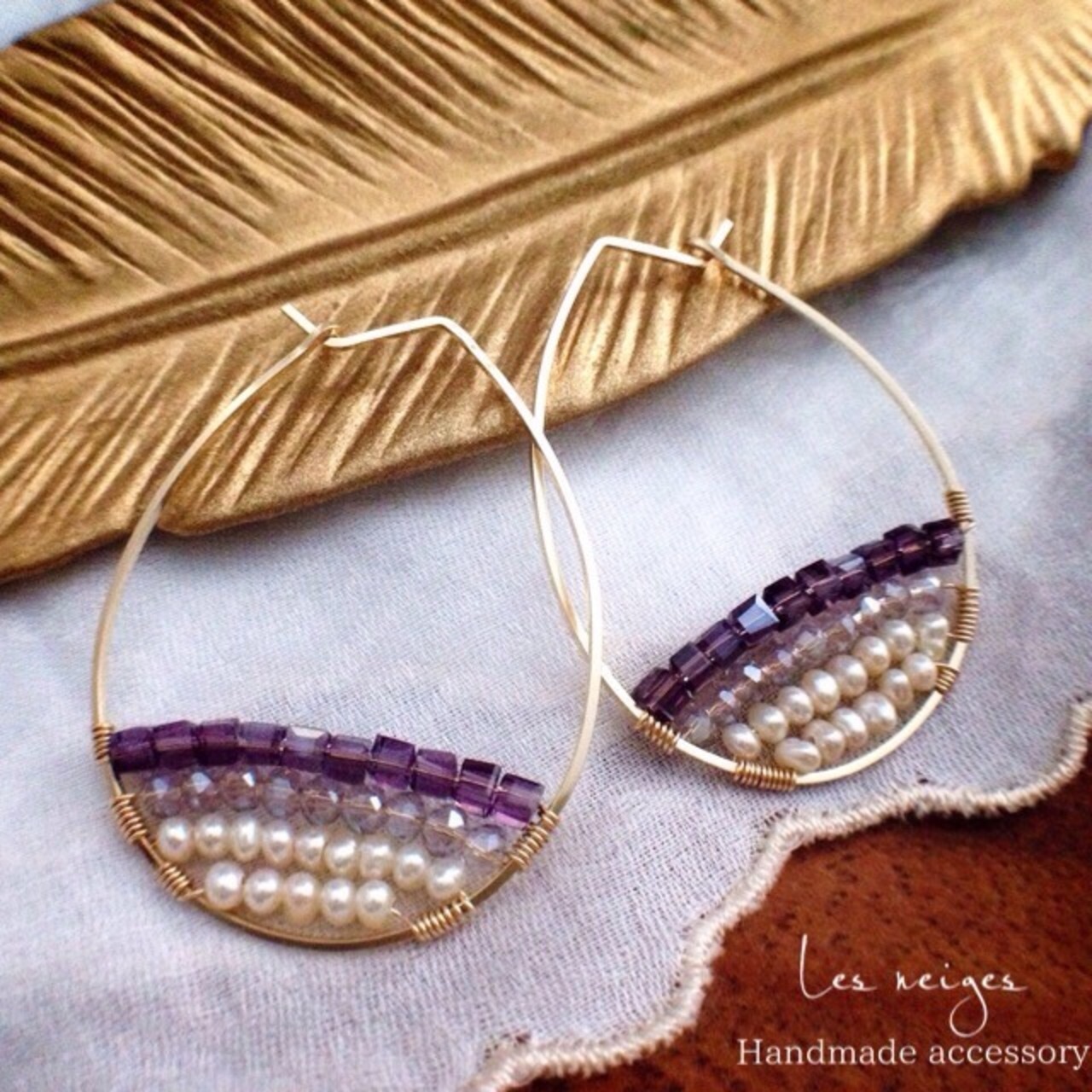 フープのゴールドとガラスビーズが